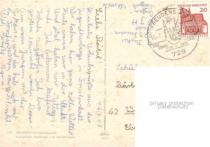 72896972 alte Postkarte FREUDENSTADT BW Evangelische Stadtkirche Marktbrunnen postalisch gelaufen Erhaltung siehe scans [KathaD81] KatCode: 11110008237028