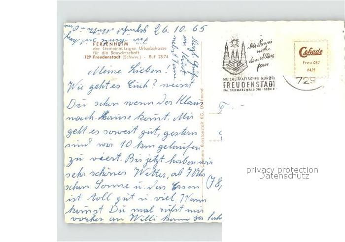71859798 alte Postkarte FREUDENSTADT BW Ferienheim der gemeinnuetzigen Urlaubskasse postalisch gelaufen Erhaltung siehe scans KatCode: 11110008237028