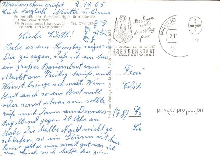 71832264 alte Postkarte FREUDENSTADT BW Ferienheim Gemeinnuetzigen Urlaubskasse Bauwirtschaft postalisch gelaufen Erhaltung siehe scans KatCode: 11110008237028