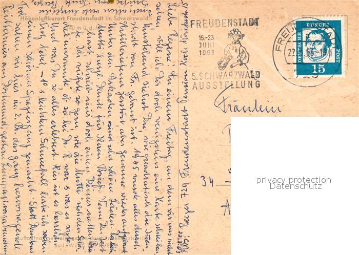 72969816 alte Postkarte FREUDENSTADT BW Fliegeraufnahme postalisch gelaufen Erhaltung siehe scans [LiesaD40] KatCode: 11110008237028