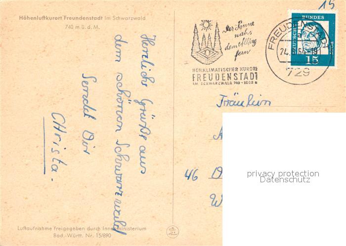 72948403 alte Postkarte FREUDENSTADT BW Fliegeraufnahme postalisch gelaufen Erhaltung siehe scans [KathaD81] KatCode: 11110008237028