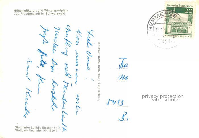 72818569 alte Postkarte FREUDENSTADT BW Fliegeraufnahme postalisch gelaufen Erhaltung siehe scans [NatalD47] KatCode: 11110008237028