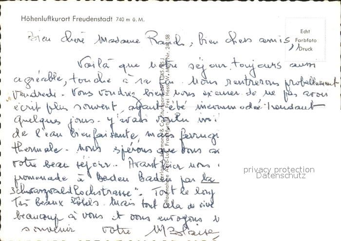 72328934 alte Postkarte FREUDENSTADT BW Fliegeraufnahme postalisch gelaufen Erhaltung siehe scans KatCode: 11110008237028