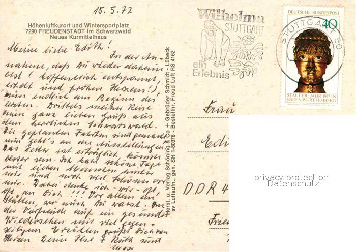 72624486 alte Postkarte FREUDENSTADT BW Fliegeraufnahme neues Kurmittelhaus postalisch gelaufen Erhaltung siehe scans [NatalD47] KatCode: 11110008237028