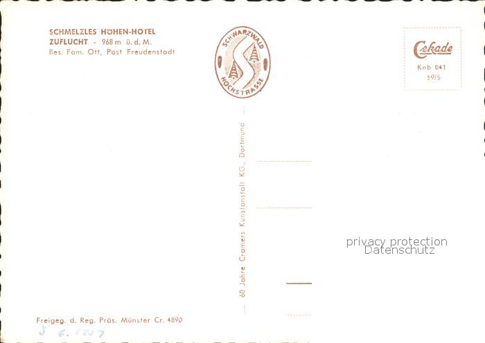 72278660 FREUDENSTADT BW Fliegeraufnahme Schmelzles Hoehen Hotetl Zuflucht postalisch nicht gelaufen Erhaltung siehe scans KatCode: 11110008237028