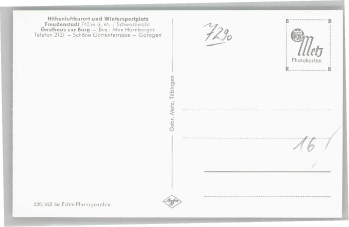 40714199 FREUDENSTADT BW Gasthaus zur Burg postalisch nicht gelaufen Alte Ansichtskarte Postkarte Katcode 11110008237028
