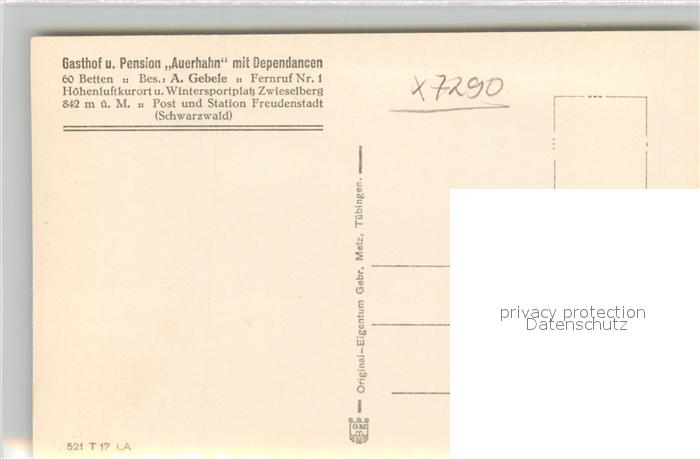 43273893 FREUDENSTADT BW Gasthof Pension Auerhahn Winter postalisch nicht gelaufen Erhaltung siehe scans [KathaD81] Kath Katcode 11110008237028