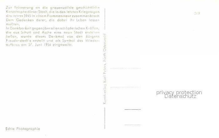 72759874 FREUDENSTADT BW Gedenksaeule postalisch nicht gelaufen Erhaltung siehe scans [WerneD78] KatCode: 11110008237028