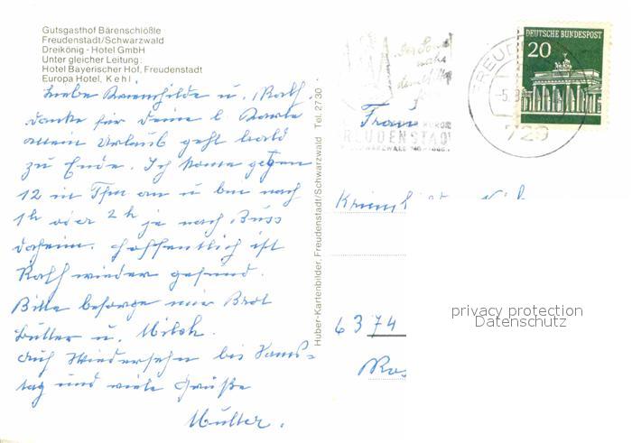 72685596 alte Postkarte FREUDENSTADT BW Gutsgasthof Baerenschloessle postalisch gelaufen Erhaltung siehe scans [NatalD47] KatCode: 11110008237028