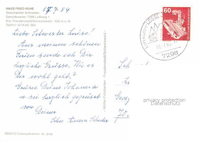 72882936 alte Postkarte FREUDENSTADT BW Haus Fried Ruhe postalisch gelaufen Erhaltung siehe scans [AndreD76] KatCode: 11110008237028