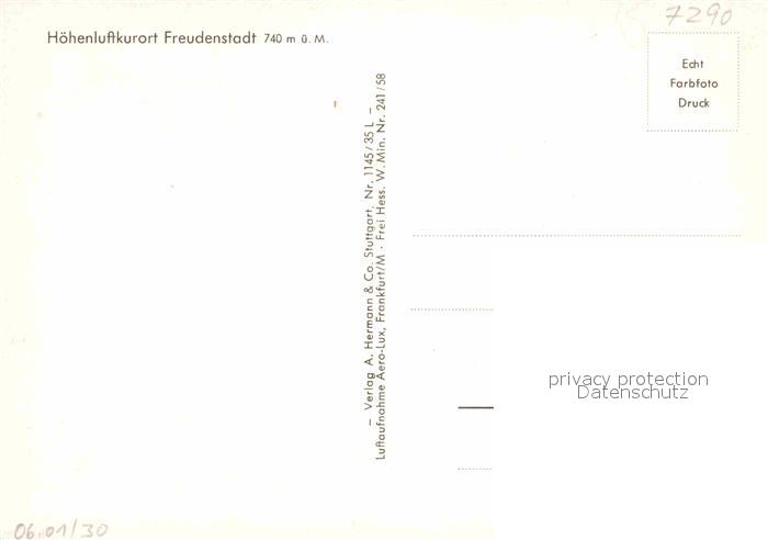 72914836 FREUDENSTADT BW Hoehenluftkurort im Schwarzwald Fliegeraufnahme postalisch nicht gelaufen Erhaltung siehe scans [FriedD77] KatCode: 11110008237028