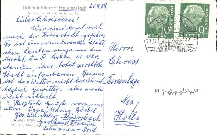 72074000 alte Postkarte FREUDENSTADT BW Hoehenluftkurort Schwarzwald Fliegeraufnahme postalisch gelaufen Erhaltung siehe scans KatCode: 11110008237028