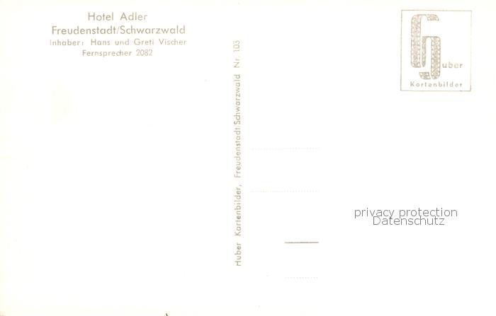 73848958 FREUDENSTADT BW Hotel Adler postalisch nicht gelaufen Erhaltung siehe scans [WerneD78] Wern Katcode 11110008237028