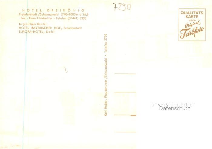 73870143 FREUDENSTADT BW Hotel Dreikoenig Wirtshaus Restaurant postalisch nicht gelaufen Erhaltung siehe scans [WerneD78] Wern Katcode 11110008237028