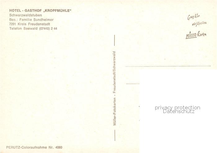 73844423 FREUDENSTADT BW Hotel Gasthof Kropfmuehle Schwarzwaldstuben postalisch nicht gelaufen Erhaltung siehe scans [FriedD77] Frie Katcode 11110008237028