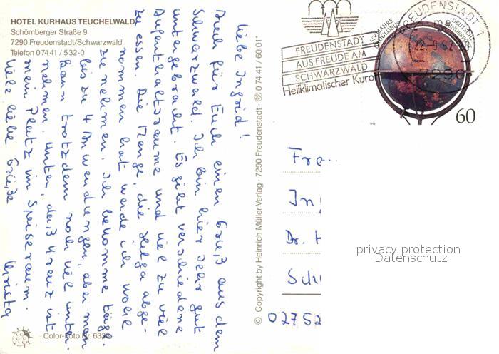 72812421 alte Postkarte FREUDENSTADT BW Hotel Kurhaus Teuchelwald postalisch gelaufen Erhaltung siehe scans [NatalD47] KatCode: 11110008237028