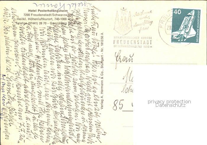 71946992 alte Postkarte FREUDENSTADT BW Hotel Posterholungsheim postalisch gelaufen Erhaltung siehe scans KatCode: 11110008237028