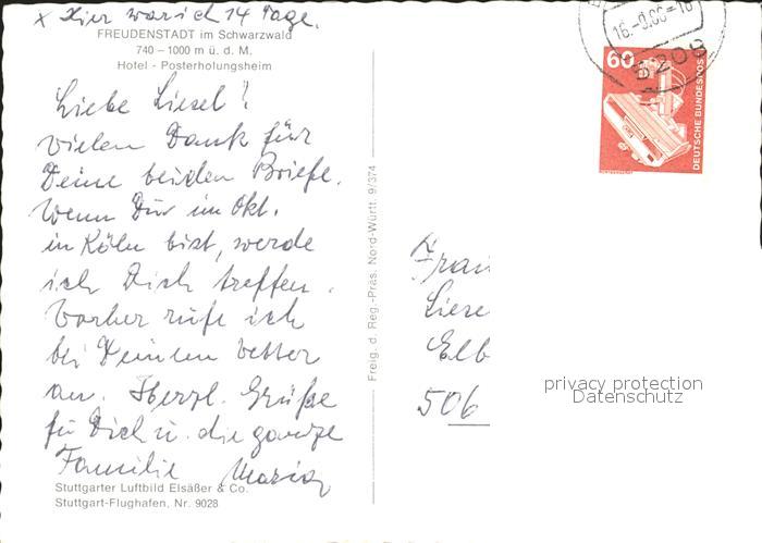 72072512 alte Postkarte FREUDENSTADT BW Hotel Posterholungsheim Schwarzwald Fliegeraufnahme postalisch gelaufen Erhaltung siehe scans KatCode: 11110008237028