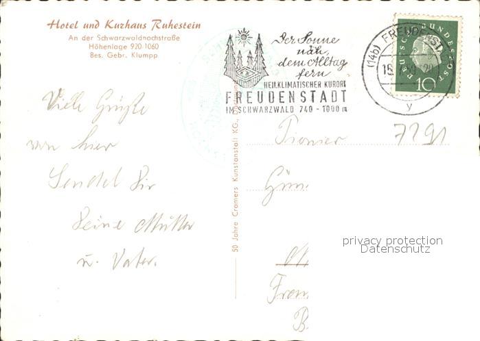 41599584 FREUDENSTADT BW Hotel und Kurhaus Ruhestein Wildsee Marktplatz mit Brunnen und Rathaus postalisch gelaufen Erhaltung siehe scans Alte Ansichtskarte Postkarte alte Postkarte hz_W Katcode 11110008237028