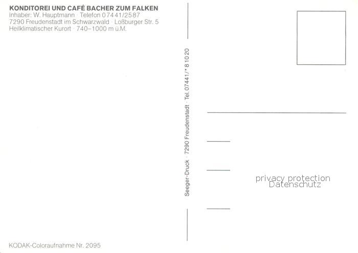 73091840 FREUDENSTADT BW Konditorei Cafe Bacher zum Falken postalisch nicht gelaufen Erhaltung siehe scans [KathaD81] KatCode: 11110008237028