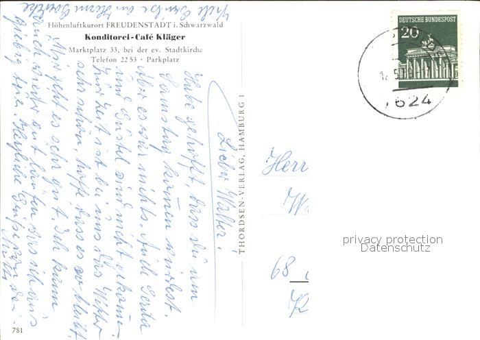 72096388 alte Postkarte FREUDENSTADT BW Konditorei Cafe Klaeger postalisch gelaufen Erhaltung siehe scans KatCode: 11110008237028
