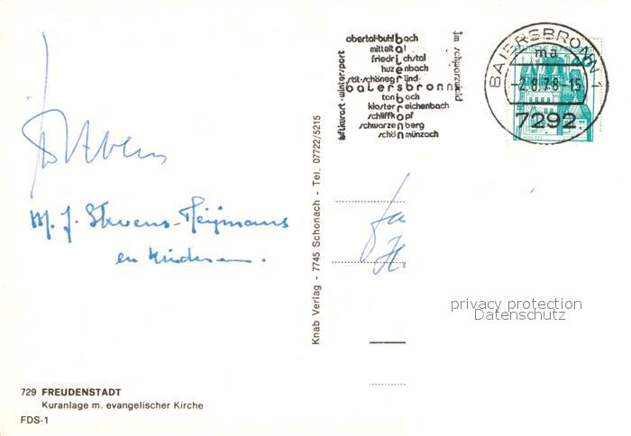 72935732 alte Postkarte FREUDENSTADT BW Kuranlage mit evangelischer Kirche postalisch gelaufen Erhaltung siehe scans [FriedD77] KatCode: 11110008237028