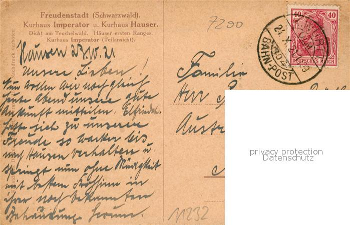 43075746 FREUDENSTADT BW Kurhaus Imperator und Kurhaus Hauser postalisch gelaufen Erhaltung siehe scans [FriedD77] alte Postkarte Frie Katcode 11110008237028