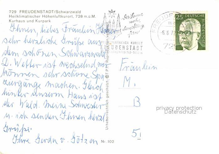 72711803 alte Postkarte FREUDENSTADT BW Kurhaus Kurpark postalisch gelaufen Erhaltung siehe scans [LiesaD40] KatCode: 11110008237028