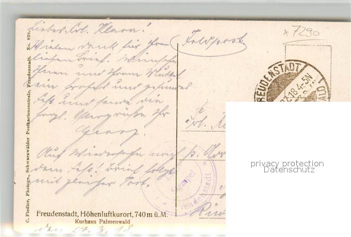 43277108 alte Postkarte FREUDENSTADT BW Kurhaus Palmenwald Kurort im Schwarzwald postalisch gelaufen Feldpost Erhaltung siehe scans [FriedD77] KatCode: 11110008237028
