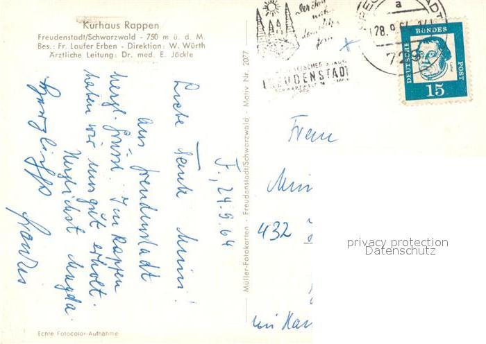 73119855 alte Postkarte FREUDENSTADT BW Kurhaus Rappen Laufer Erben postalisch gelaufen Erhaltung siehe scans [LiesaD40] KatCode: 11110008237028