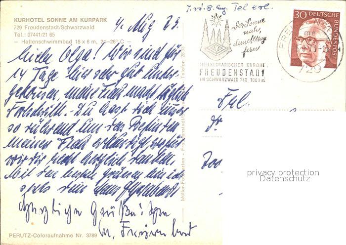 72064872 alte Postkarte FREUDENSTADT BW Kurhotel Sonne am Kurpark Schwarzwald postalisch gelaufen Erhaltung siehe scans KatCode: 11110008237028