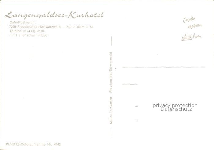 72435101 FREUDENSTADT BW Langenwaldsee-Kurhotel postalisch nicht gelaufen Erhaltung siehe scans KatCode: 11110008237028