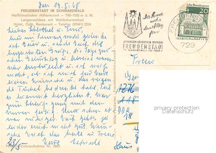 73721758 FREUDENSTADT BW Langenwaldsee mit Waldschwimmbad Hotel Cafe Restaurant postalisch gelaufen Erhaltung siehe scans [WerneD78] alte Postkarte Wern Katcode 11110008237028