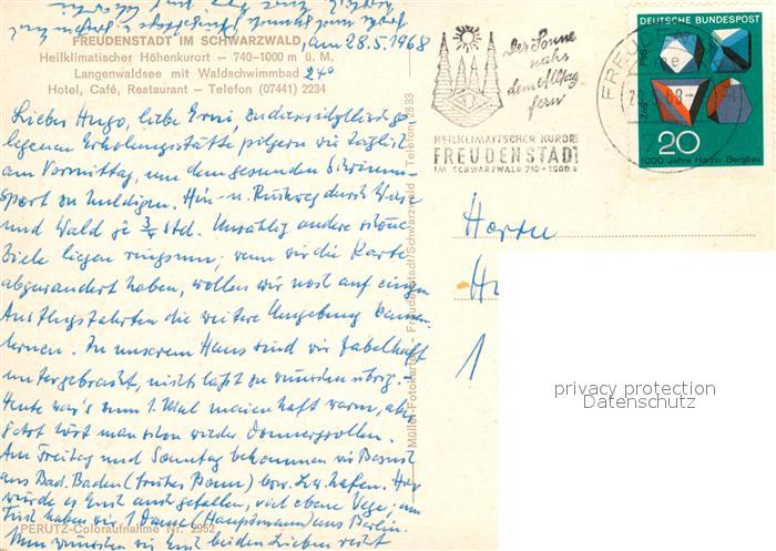 72966364 alte Postkarte FREUDENSTADT BW Langenwaldsee Waldschwimmbad Hotel postalisch gelaufen Erhaltung siehe scans [NatalD47] KatCode: 11110008237028