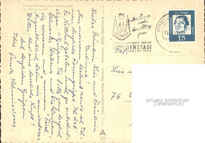 72036851 alte Postkarte FREUDENSTADT BW Langwaldsee Bootspartie postalisch gelaufen Erhaltung siehe scans KatCode: 11110008237028