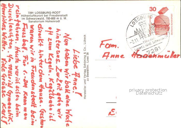 71931078 alte Postkarte FREUDENSTADT BW Lossburg Rodt postalisch gelaufen Erhaltung siehe scans KatCode: 11110008237028