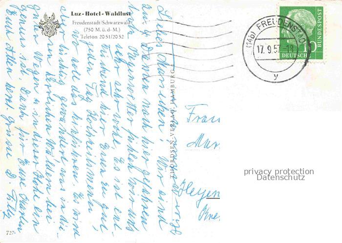 74060523 FREUDENSTADT BW Luz-Hotel Waldlust im Schwarzwald postalisch gelaufen Erhaltung siehe scans [FriedD77] alte Postkarte Frie Katcode 11110008237028