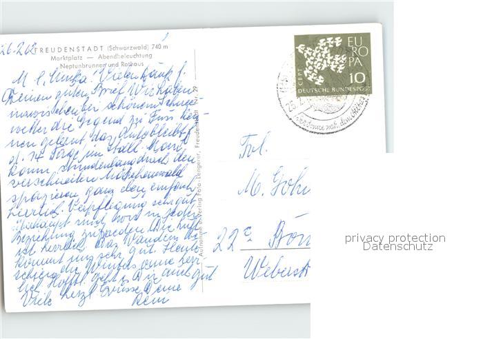 72078798 alte Postkarte FREUDENSTADT BW Markplatz Neptunbrunnen und Rathaus postalisch gelaufen Erhaltung siehe scans KatCode: 11110008237028