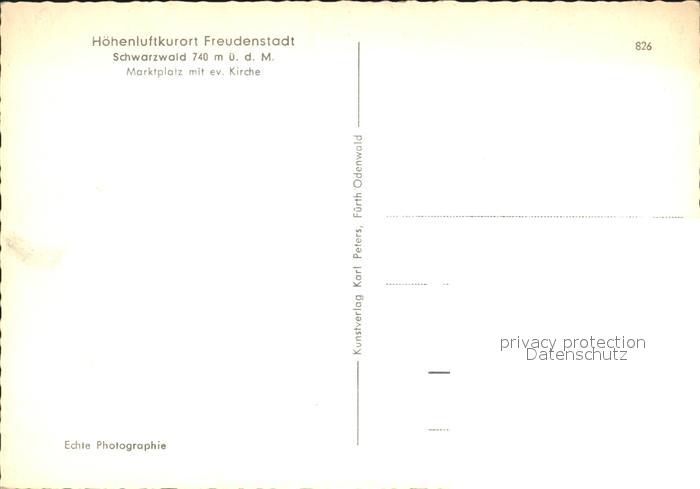 72099003 FREUDENSTADT BW Marktplatz Brunnen Evangelische Kirche postalisch nicht gelaufen Erhaltung siehe scans KatCode: 11110008237028