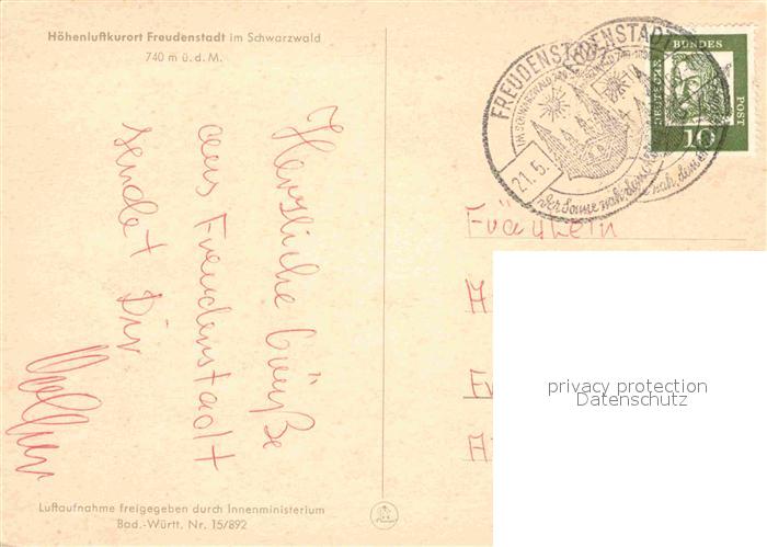 72819662 alte Postkarte FREUDENSTADT BW Marktplatz Fliegeraufnahme postalisch gelaufen Erhaltung siehe scans [NatalD47] KatCode: 11110008237028