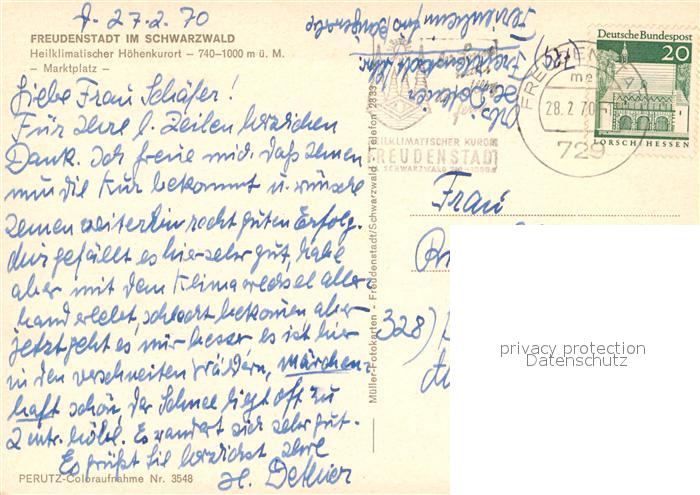 73226110 alte Postkarte FREUDENSTADT BW Marktplatz im Winter postalisch gelaufen Erhaltung siehe scans [LiesaD40] KatCode: 11110008237028