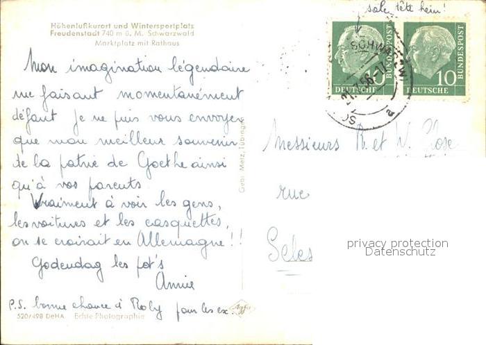 72319735 alte Postkarte FREUDENSTADT BW Marktplatz mit Brunnen und Rathaus postalisch gelaufen Erhaltung siehe scans KatCode: 11110008237028