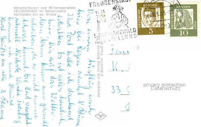 72795502 alte Postkarte FREUDENSTADT BW Marktplatz mit Kirche postalisch gelaufen Erhaltung siehe scans [LiesaD40] KatCode: 11110008237028