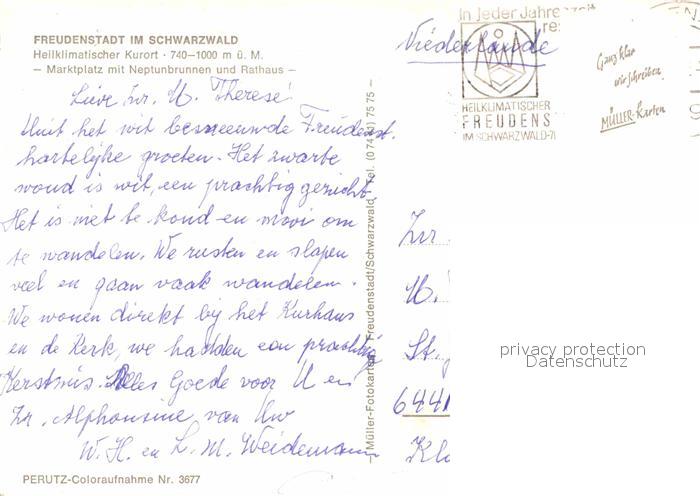 72856033 alte Postkarte FREUDENSTADT BW Marktplatz mit Neptunbrunnen und Rathaus im Winter Kurort im Schwarzwald postalisch gelaufen Erhaltung siehe scans [FriedD77] KatCode: 11110008237028