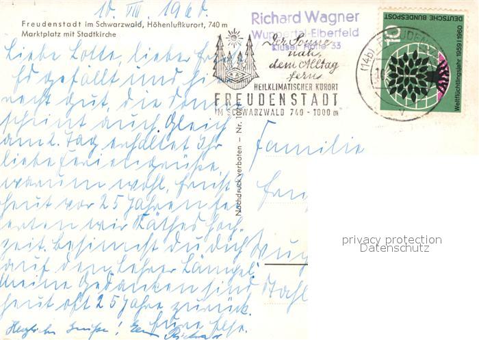 72998262 alte Postkarte FREUDENSTADT BW Marktplatz mit Stadtkirche postalisch gelaufen Erhaltung siehe scans [WerneD78] KatCode: 11110008237028