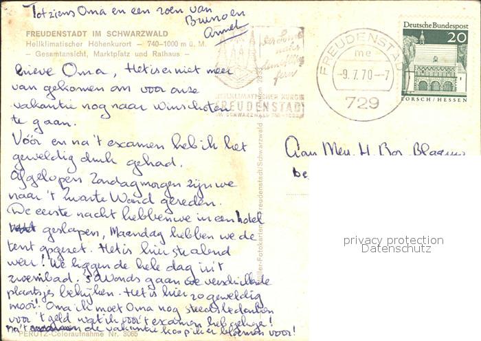 72305150 alte Postkarte FREUDENSTADT BW Marktplatz Rathaus postalisch gelaufen Erhaltung siehe scans KatCode: 11110008237028