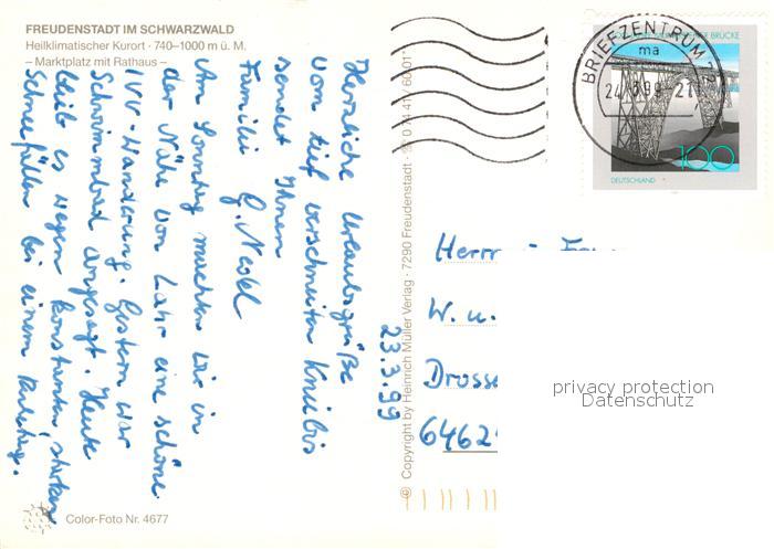 73192716 alte Postkarte FREUDENSTADT BW Marktplatz Rathaus postalisch gelaufen Erhaltung siehe scans [NatalD47] KatCode: 11110008237028