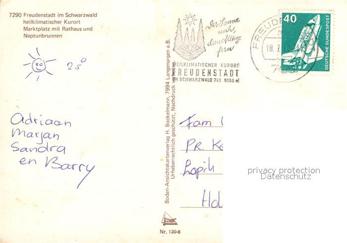 72930884 alte Postkarte FREUDENSTADT BW Marktplatz Rathaus Neptunbrunnen postalisch gelaufen Erhaltung siehe scans [LiesaD40] KatCode: 11110008237028