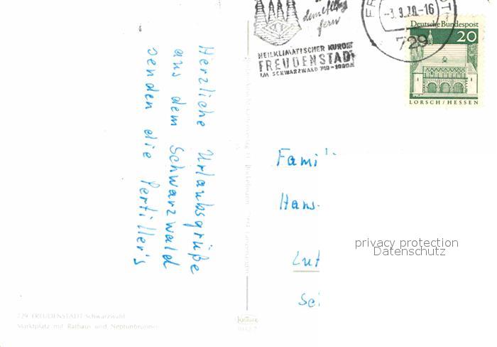 72855485 alte Postkarte FREUDENSTADT BW Marktplatz Rathaus Neptunbrunnen postalisch gelaufen Erhaltung siehe scans [LiesaD40] KatCode: 11110008237028