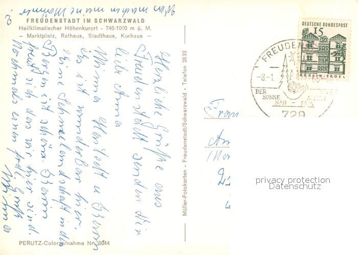 73043575 alte Postkarte FREUDENSTADT BW Marktplatz Rathaus Stadthaus Kurhaus Kurort im Schwarzwald postalisch gelaufen Erhaltung siehe scans [FriedD77] KatCode: 11110008237028